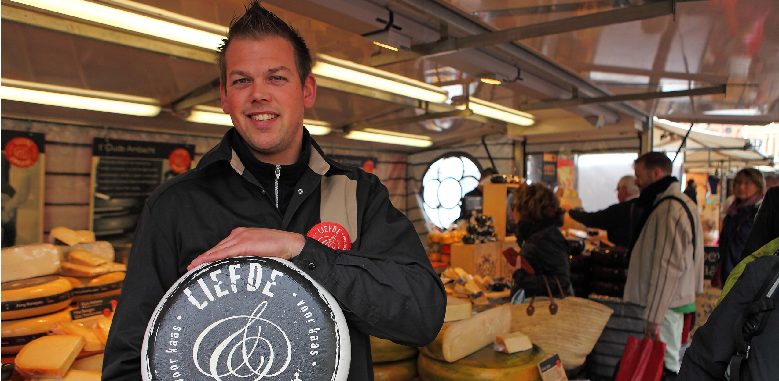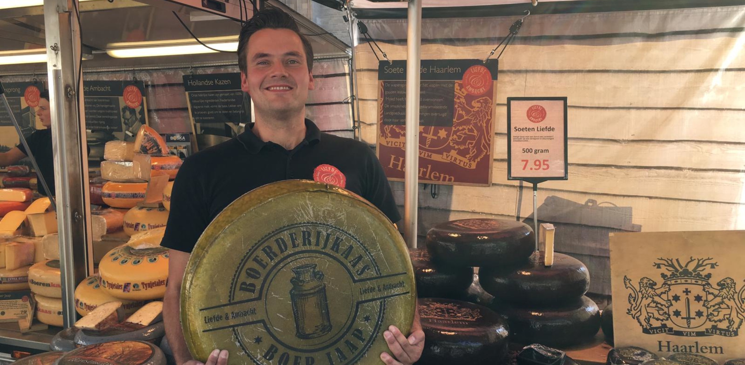 Mijn vader is ook kaasboer en als kind ging ik al graag mee naar de markt. Verder als blokjes kaas uitdelen kwam ik dan niet, maar dat deed er niet toe. De sfeer heeft toen veel indruk op mij gemaakt en heb al snel besloten dat ik de markt op wilde.